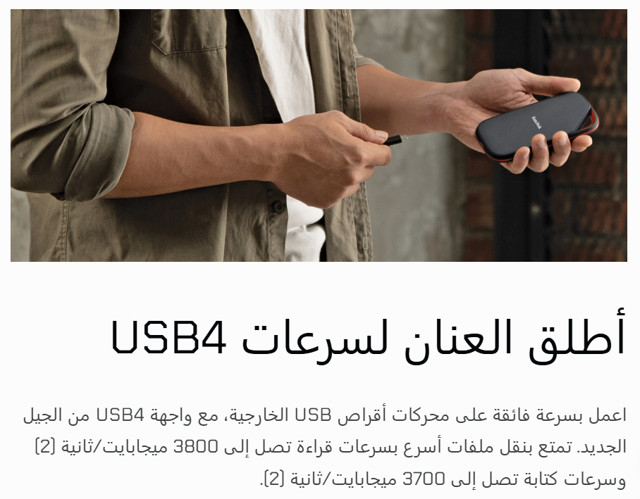 قبل نصف ساعة يتميز محرك الأقراص الصلبة المحمول SanDisk Extreme PRO بواجهة USB 4.0، وسرعات قراءة تصل إلى 3800 ميجابايت/ثانية وسرعات كتابة تصل إلى 3700 ميجابايت/ثانية، وتوافق مع الإصدارات السابقة من واجهات USB 3.2 و - محرك أقراص الحالة الصلبة المحمول SanDisk Extreme - سعة 2 تيرابايت (أسود)